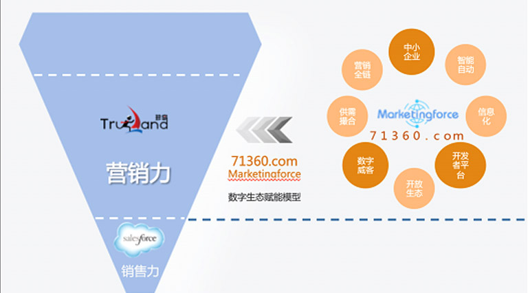 中小企業(yè)要高質(zhì)量發(fā)展,前提是“生存”。企業(yè)的核心生命力來自于“營銷”和“獲客”,而這樣一個(gè)5000萬技術(shù)的企業(yè)群體的生命力若被激活,對(duì)中國經(jīng)濟(jì)的推動(dòng)和促進(jìn)意義不可小覷。但在當(dāng)前的競(jìng)爭(zhēng)環(huán)境和生存壓力下,中小企業(yè)“營銷力”存在普遍短板;面對(duì)多元復(fù)雜的數(shù)字營銷世界,“介入難”和“運(yùn)營難”是擺在中小企業(yè)面前的兩大難題。珍島“智能營銷云平臺(tái)(71360.com)”的設(shè)計(jì)之初,則直面中小企業(yè)“剛需”,通過低成本(年費(fèi)或增值服務(wù)收費(fèi))、一站式(建平臺(tái)、做推廣、再營銷、臻管家)企業(yè)SaaS服務(wù)平臺(tái)模型創(chuàng)新,以及數(shù)字威客、云應(yīng)用市場(chǎng)、數(shù)字媒體自助服務(wù)等增值服務(wù)體系的設(shè)計(jì),幫助中小企業(yè)完成Marketingforce的閉環(huán)賦能。