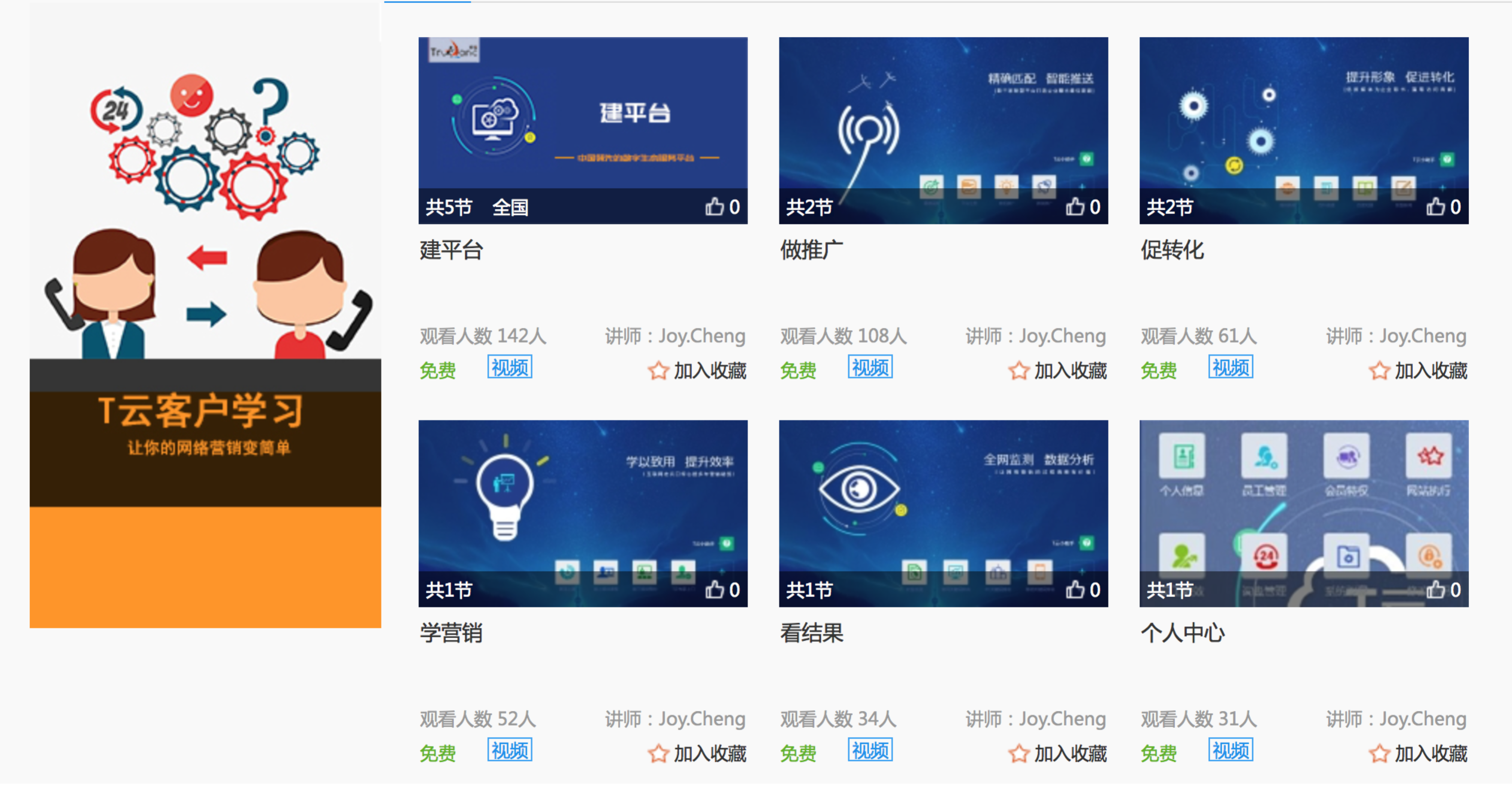 基于珍島在智能營銷領(lǐng)域的多年實踐,已積累一批優(yōu)秀的行業(yè)專家與專業(yè)講師,他們來源于實踐,通過“多元化課件”將企業(yè)智能營銷領(lǐng)域豐富的經(jīng)驗進(jìn)行沉淀,并釋放到“珍島云課堂”;如果說“在線學(xué)習(xí)系統(tǒng)”是必要的載體,那么“內(nèi)容”則是企業(yè)“數(shù)字化學(xué)習(xí)賦能”的實力支撐。