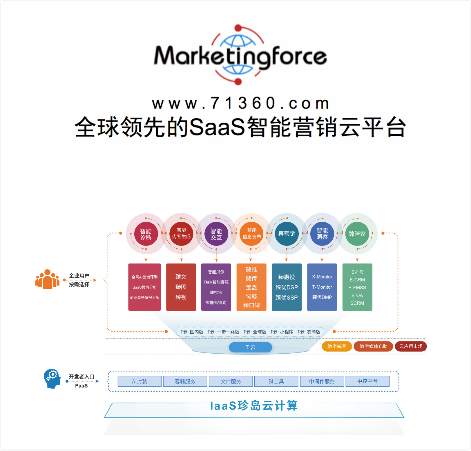 在珍島會客廳,于勇區(qū)長詳細(xì)了解企業(yè)業(yè)務(wù)發(fā)展情況,趙旭隆介紹:“珍島目前的核心商業(yè)定位是打造全球領(lǐng)先的Marketingforce平臺,為全球中小微企業(yè)進(jìn)行營銷力賦能。T云系列產(chǎn)品是Marketingforce在企業(yè)服務(wù)市場終端卓有成效的應(yīng)用工具,其意義在于改變傳統(tǒng)營銷市場服務(wù)格局,依托云計(jì)算、數(shù)據(jù)中臺核心技術(shù)我們可以輕松幫助企業(yè)將營銷服務(wù)推進(jìn)至平臺化、軟件化、智能化、生態(tài)化。”