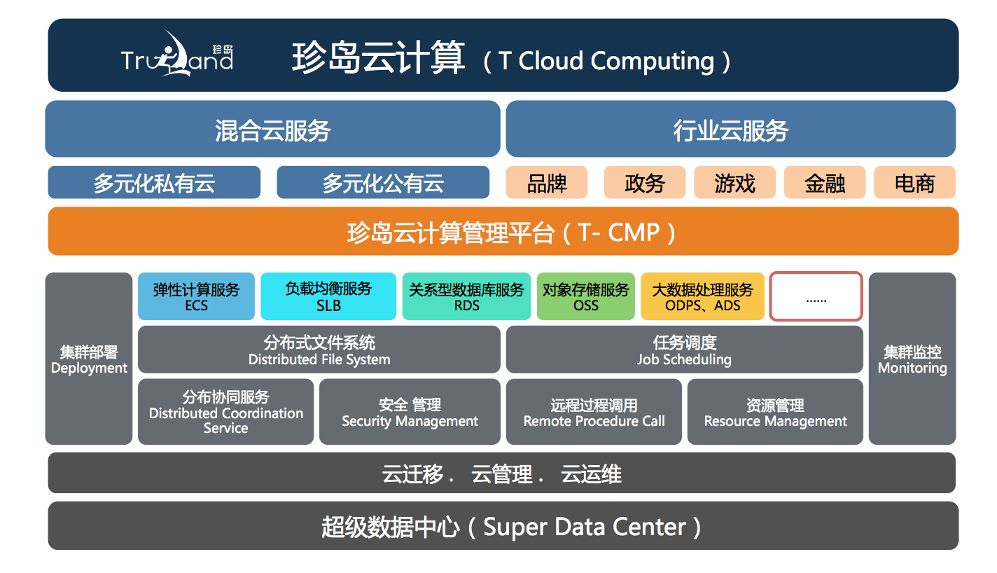 珍島云計(jì)算管理平臺(tái)(T-CMP)可以輕松駕馭混合云中若干公有云計(jì)算、若干私有云計(jì)算以及企業(yè)原有傳統(tǒng)管理系統(tǒng)之間的多級(jí)資源管理,使存儲(chǔ)、計(jì)算、應(yīng)用開(kāi)發(fā)等環(huán)節(jié)流暢可控。