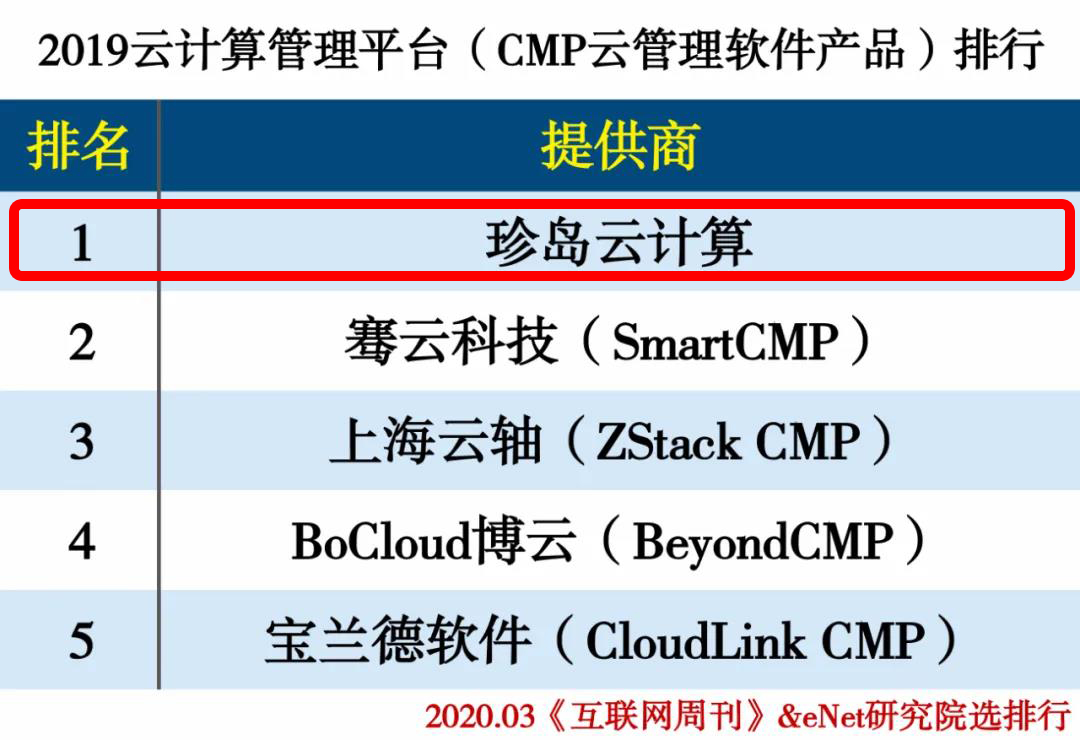 3月31日,由中國(guó)科學(xué)院以及中國(guó)社會(huì)科學(xué)院信息化研究中心、eNet硅谷動(dòng)力組織的2019年度云計(jì)算分類評(píng)測(cè)結(jié)果發(fā)布,此次評(píng)測(cè)由云計(jì)算領(lǐng)域的行業(yè)專家、顧問(wèn)、教授從云計(jì)算服務(wù)不同的維度和視角進(jìn)行分析,推選出云計(jì)算各領(lǐng)域的優(yōu)勢(shì)廠商,其中珍島云計(jì)算兩項(xiàng)評(píng)測(cè)入圍,即:“珍島云計(jì)算管理平臺(tái)(T-CMP)”位列綜合優(yōu)勢(shì)第一、且“珍島混合云服務(wù)”進(jìn)入全國(guó)前15強(qiáng) 。
