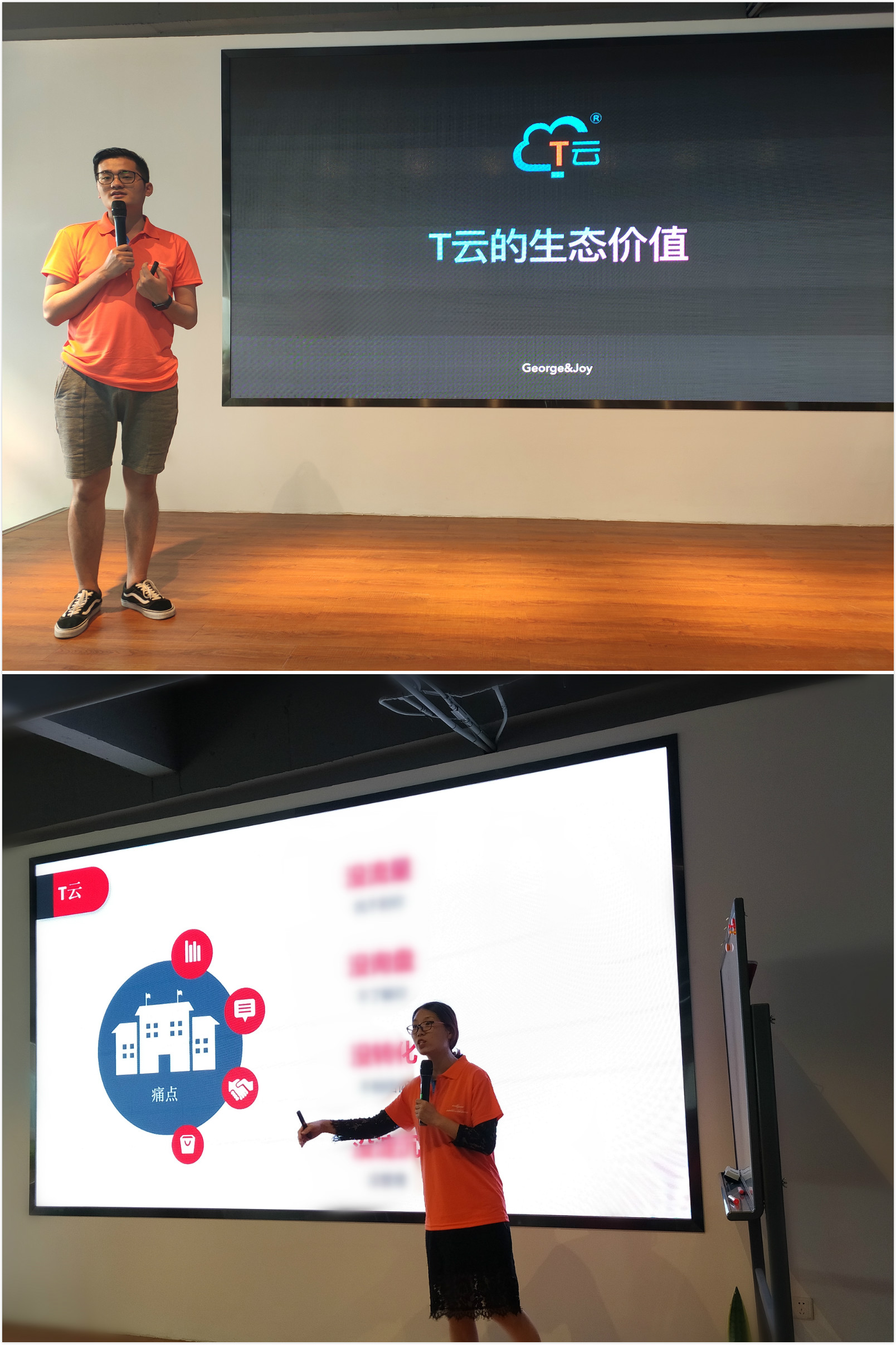 會議的第一天,梳理了產(chǎn)品的發(fā)展,之后,商務(wù)總監(jiān)George與高級網(wǎng)絡(luò)營銷專家Joy從中小企業(yè)的角度,講解了T云的生態(tài)價值。從中小微企業(yè)出發(fā),全力服務(wù)中小微企業(yè),T云將會努力為社會做出自己的一份貢獻。