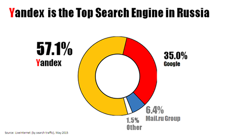 Доля ?Яндекса? на российском рынке интернет-поиска занимает почти 60%, в то время как Google лишь 35%.