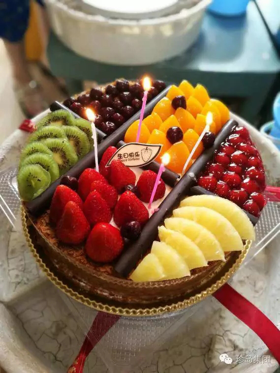 互相展示完各自的作品后,貼心的負(fù)責(zé)人還為現(xiàn)場的壽星小伙伴們準(zhǔn)備了精致的蛋糕,水果分類如此貼心的蛋糕,一定是妹子挑選的~作為一名草莓控,那塊草莓我承包了!
