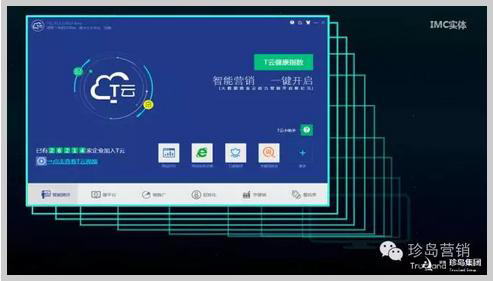 關于IMC的具體落地,張蓬向全場嘉賓和專家介紹了珍島T云(IMC ),它是一個完全基于IMC理念的智能營銷云平臺,同樣采用云端SaaS模式,可以滿足企業(yè)用戶的數(shù)字營銷需求。