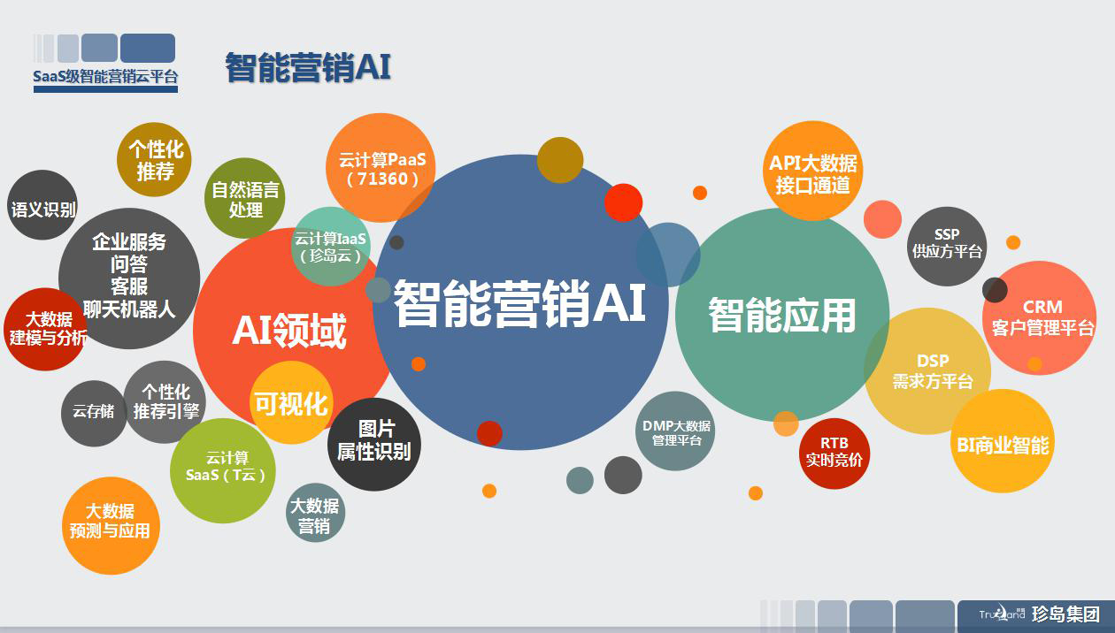 接著,韓金林博士簡要介紹了珍島集團智能營銷AI“獨角獸”的發(fā)展歷程。經(jīng)過10多年的沉淀,珍島集團已發(fā)展為中國領(lǐng)先的SaaS級智能營銷云平臺,形成以互聯(lián)網(wǎng)技術(shù)為依托、以云計算為支撐、以大數(shù)據(jù)為內(nèi)容變現(xiàn)、以人工智能為實現(xiàn)方式的智能營銷生態(tài)系統(tǒng)和71360平臺,融入10多個人工智能應(yīng)用領(lǐng)域,建成10多個智能營銷子系統(tǒng)模塊,打磨出近百種智能營銷產(chǎn)品,服務(wù)企業(yè)達6萬多家。2017年被摩根士丹利內(nèi)部評為人工智能類佳投資項目,2018年被《互聯(lián)網(wǎng)周刊》評選為中國人工智能企業(yè)100強,名列第九。