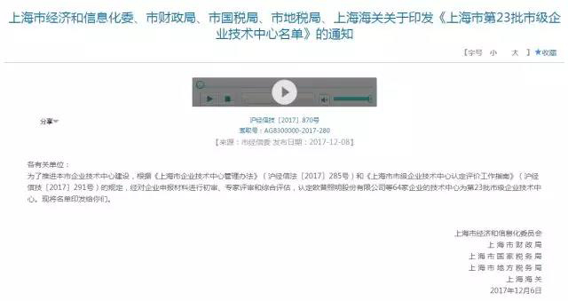 上海市市級企業(yè)技術(shù)中心評定工作是由上海市經(jīng)信委組織指導,根據(jù)《上海市企業(yè)技術(shù)中心管理辦法》和《上海市市級企業(yè)技術(shù)中心認定評價工作指南》相關(guān)規(guī)定,經(jīng)對企業(yè)申報材料進行初審、專家評審和綜合評估而終確認,評定內(nèi)容包括企業(yè)在產(chǎn)品技術(shù)創(chuàng)新、技術(shù)人才組織創(chuàng)新、產(chǎn)學研合作創(chuàng)新、商業(yè)模式創(chuàng)新等領(lǐng)域的核心競爭力及社會效益、商業(yè)價值貢獻等要素。